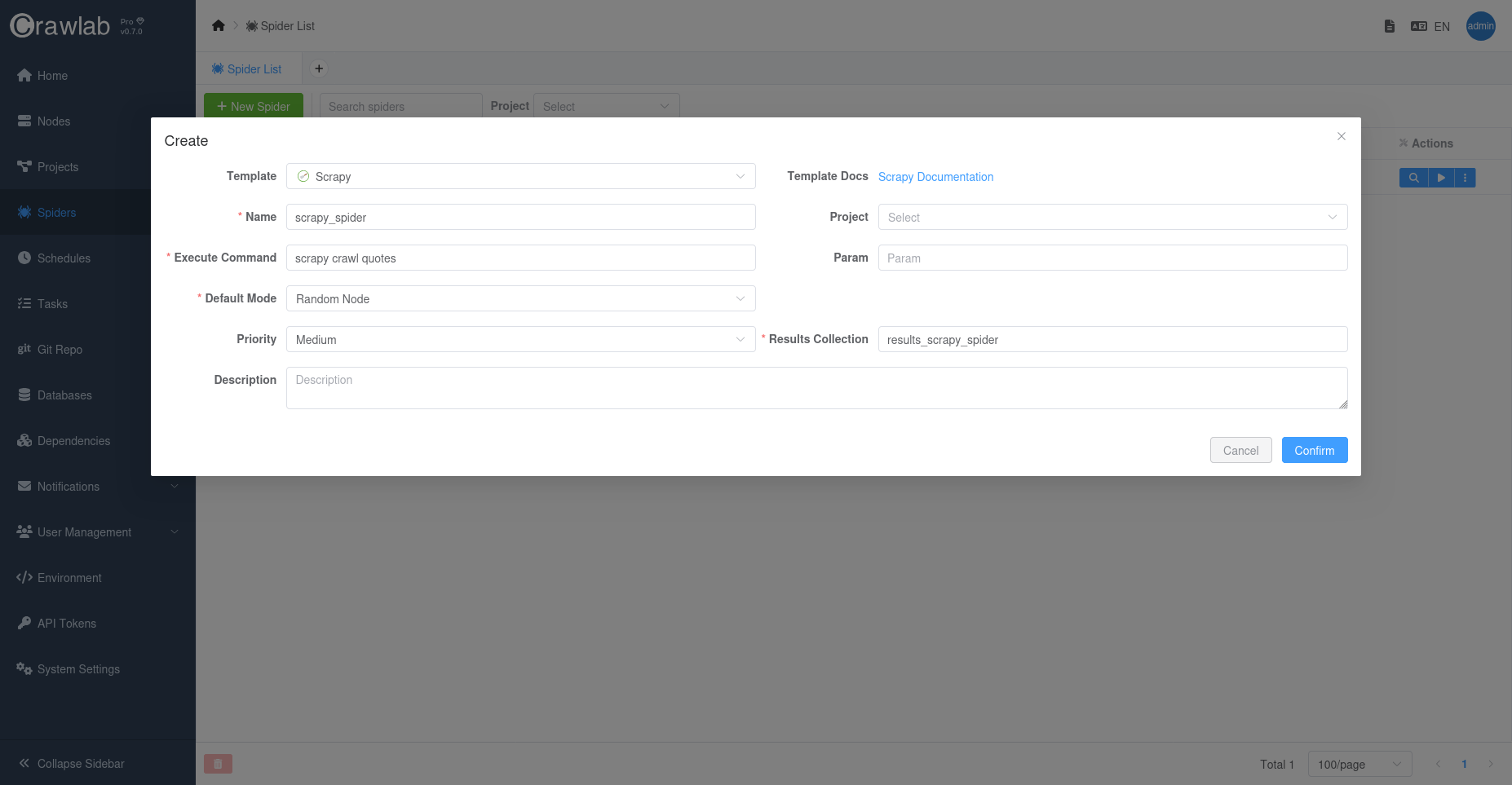 First thing first, we are going to create a Scrapy spider on Crawlab.