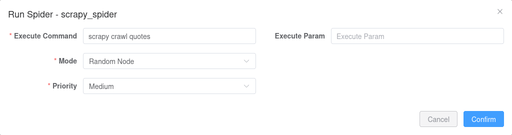 Then go to Spiders page, and click New Spider on the top left to open the create dialog.