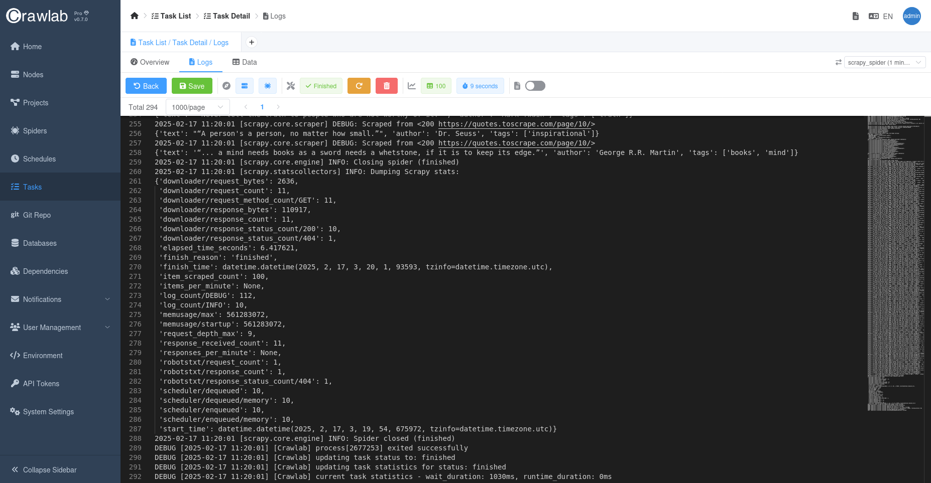 - View realtime logs and crawled data on Crawlab.